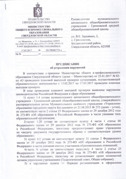 Самообследование МАОУ-Грязновская СОШ за 2019 год